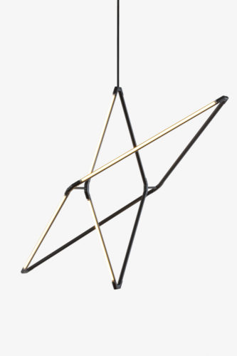 Bec Brittain’s Zelda orbits fixture is highly adaptable: its flexible form can be set as a single diamond, fit into others like a linked chain, or arranged in orbit-like configurations. It’s made of solid brass and comes in nine different finishes.