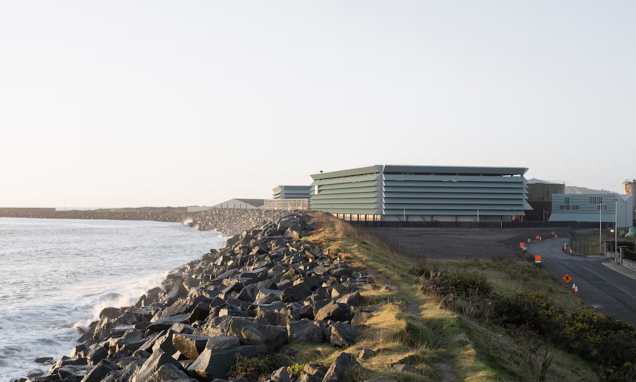 Arklow, Ireland, has unveiled a striking wastewater treatment plant designed by Clancy Moore, finally ending decades of raw sewage discharge into the sea. With its pagoda-like sheds, mint green louvres, and gravity-fed processing system, the plant, whose form was inspired by the Sydney Opera House, combines architectural finesse with environmental necessity. Built on a prominent waterfront site, it restores local swimming conditions and symbolizes the civic value of infrastructure done right.