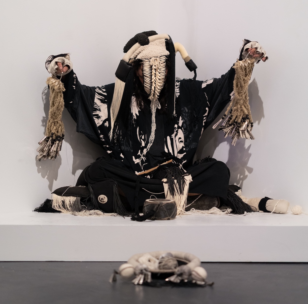 How the work reflects your practice as a whole: I am able to pass down what has been passed onto me. My work in a lot of ways are these totems of memory holding onto not only my stories, but the stories of my family, friends, ancestors and Holy People, but also the stories of all the hands who touched the material before and after me. They exist in time as language holders. They can be danced and sung with and sometimes they sing new songs that I’ve yet to hear. I can’t wait to hear Hólǫ́ say your name.