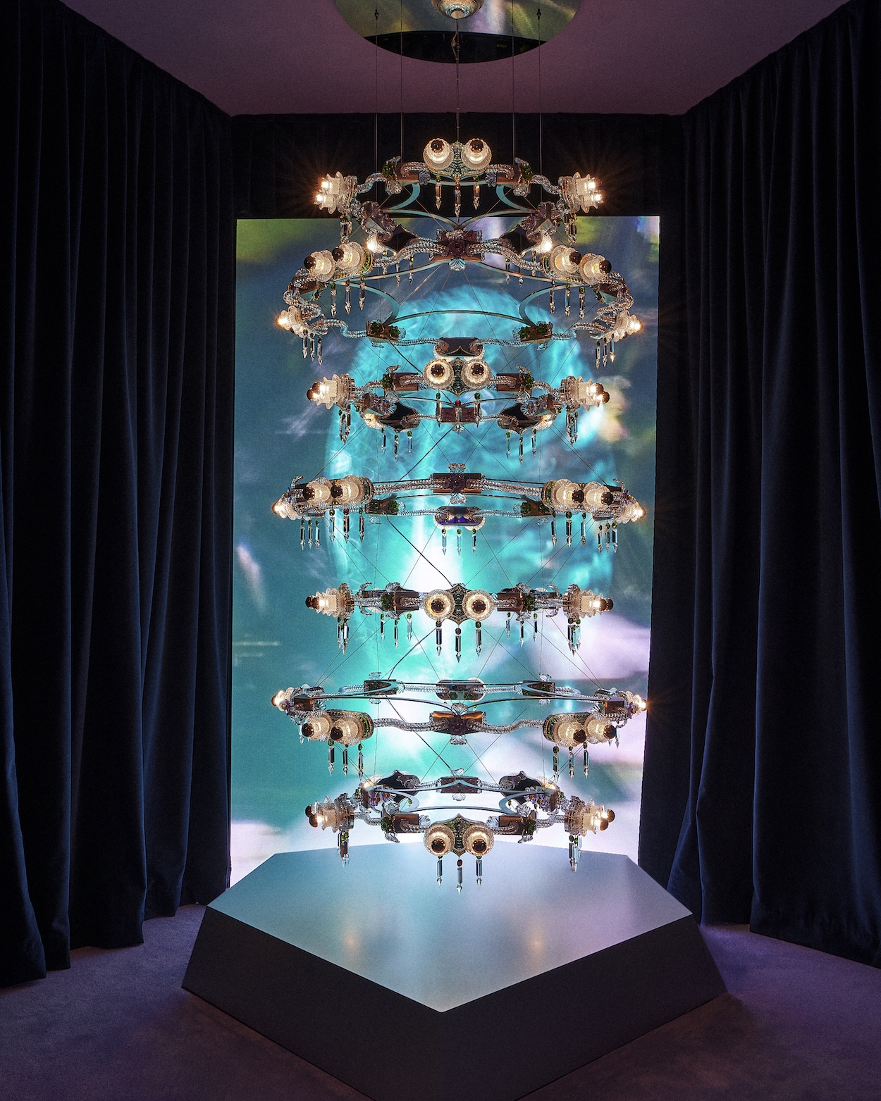 “I wanted to create a work that positions the past and present from the perspective of a far off future, the year 5300,” says French artist, scenographer, and choreographer Emmanuelle Luciani. “Taking a fresh look at Baccarat’s prolific history, I envisioned a sci-fi movie in-which the hyper-skilled know-how of its master artisans had been lost to time.”