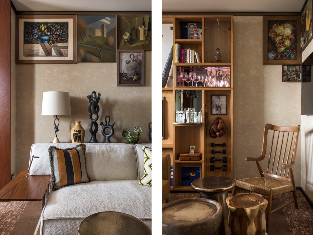 A curious diner’s eye will land on the restaurant’s considerable art collection, within which the property’s next chapter begins to unfold. “[Artists] would often pay for their drinks with their own paintings that would remain on the walls,” says Starck. “This is the idea behind the art collection in the restaurant. We tracked down the paintings on display by leafing through auction catalogues every day for three years.”