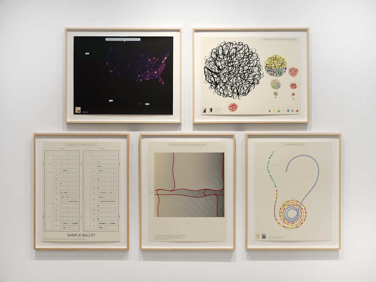 This exhibition is the start of a new, heterodox, multi-pronged research project for me. In the first quarter of the 20th century, Du Bois boldly turned toward art and exhibition-making as methods for charting Pan-African progress in both practice and theory. In so doing, he anticipated the paradigmatic shift from modernism to postmodernism through unprecedented innovations such as hand-drawn illustrations, curated exhibitions, and Pan-African-focused publications and artist commissions. And there are a ton of present-day artists, illustrators, designers, data scientists, and others who count him as an inspiration. So I wanted to highlight the impact of his legacy on contemporary art and print, and show how his concept of double consciousness—the awareness that comes from being structurally positioned to look at and measure oneself through the eyes of others—endures and morphs in the age of big data.
