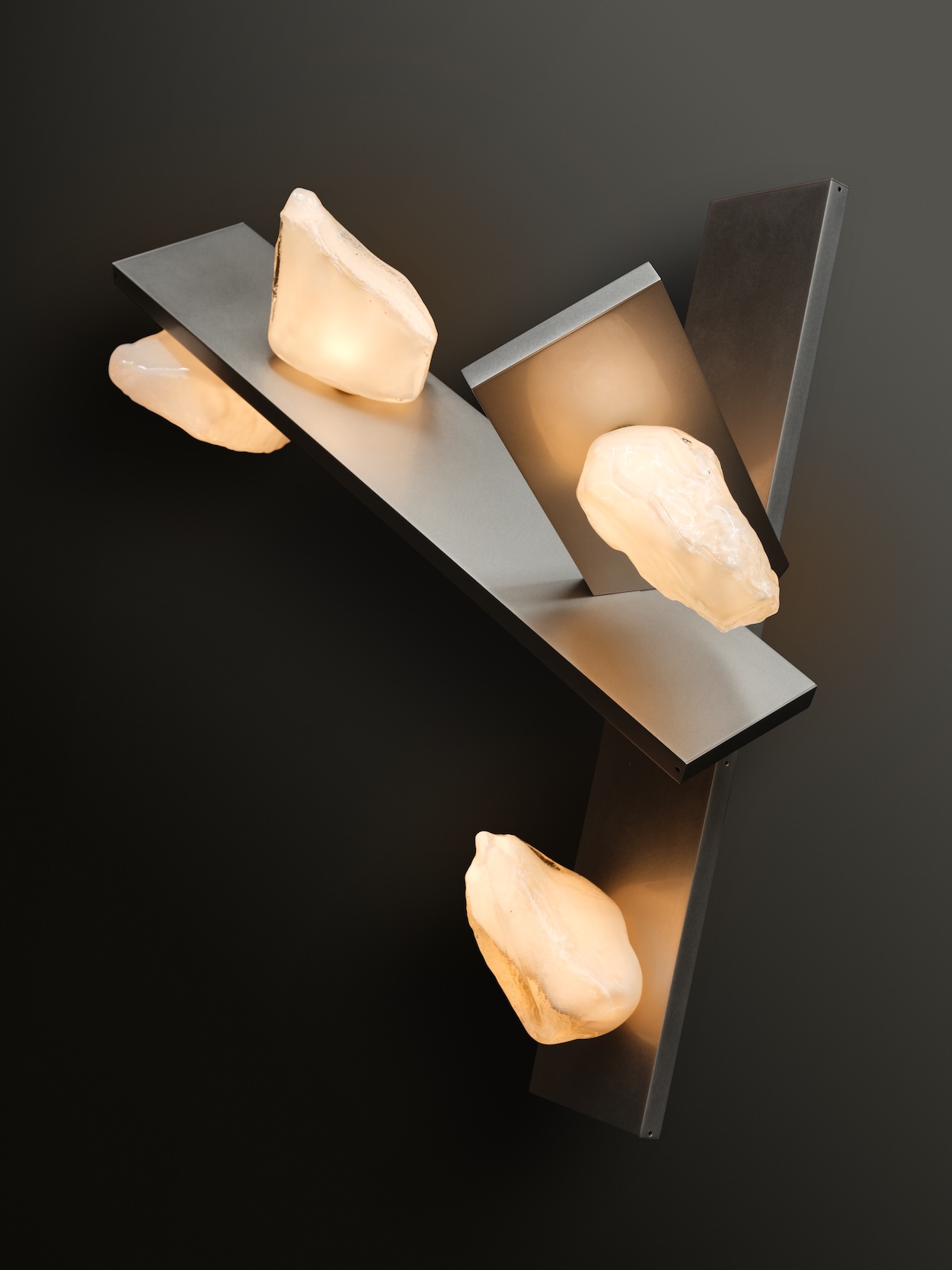 Share the project you are working on now: Andromeda. Our newest lighting collection is a cacophony of intersecting planes catching glowing glass rocks.