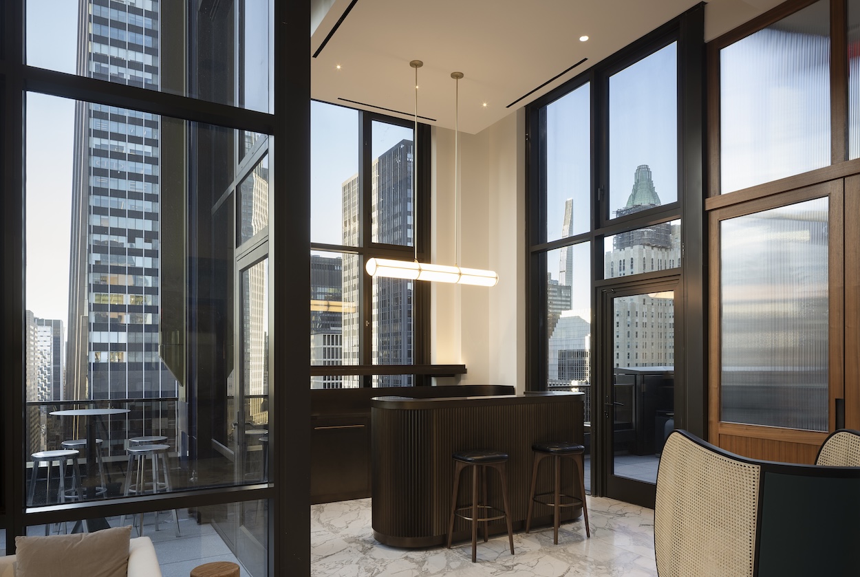 There is a strong spatial experience inspired by the traditional long-tang (lanes) of Shanghai, where there is a blurring of interior/exterior spaces, private/public spaces, where one can see from one’s guestroom windows directly into the hotel lobby or the restaurant. Also spread across different surfaces of the hotel are graphic installations of quotes regarding traveling from past Shanghainese literati and local phrases about food, clothing, and everyday practices well known to locals but not quite understandable to non-locals. The architectural form and material of the new rooftop addition echo that of ships passing by the Huangpu River in front of the hotel.