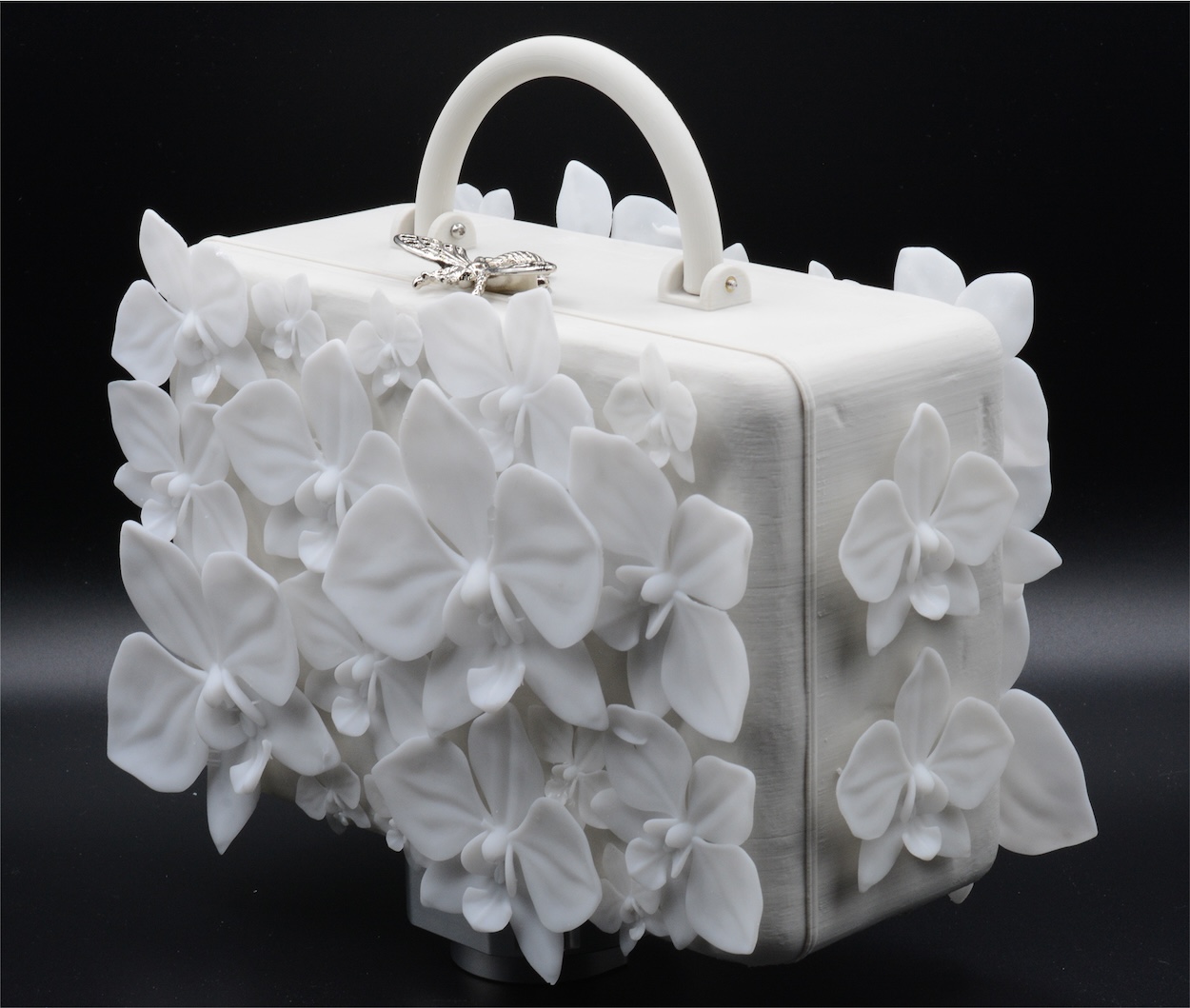 Quick plug for something I also really want to highlight: our Orchid Bag from the new SS26 collection. Created in collaboration with my friend Carter Peterson, it marks my first accessory and I’m so excited about it. It’s a stunning little purse (meant to resemble a mini briefcase) that is encrusted in white resin orchids. Carter is also an incredible talent in his own right and launched his lighting company recently called Enody (@enody.lighting). He’s utilizing his medium in an innovative new way, check out his work if you can!