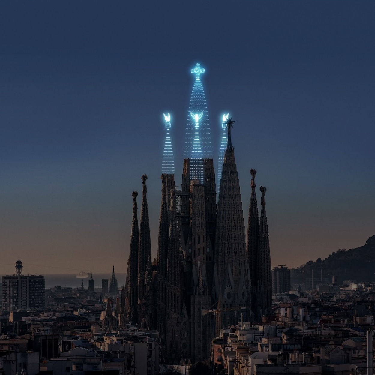 From Barcelona’s incomplete Sagrada Familia cathedral to the ruins of Rome’s Colosseum, perfectly choreographed, light-equipped drones have come together to restore the fully realized vision of lauded structures worldwide. These momentary architectural developments come courtesy of a collaboration between Amsterdam-based duo Drift and the light-show platform Drone Stories (a sister brand to the design studio). Both floating tribute and immersive artistic experience, the collaboration uses architectural data to offer a brief glimpse into the past, the future, or the unrealized.