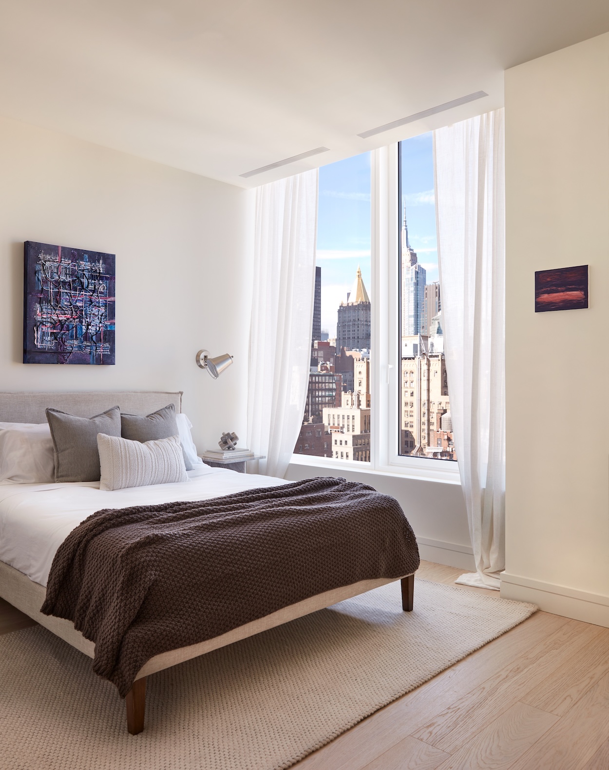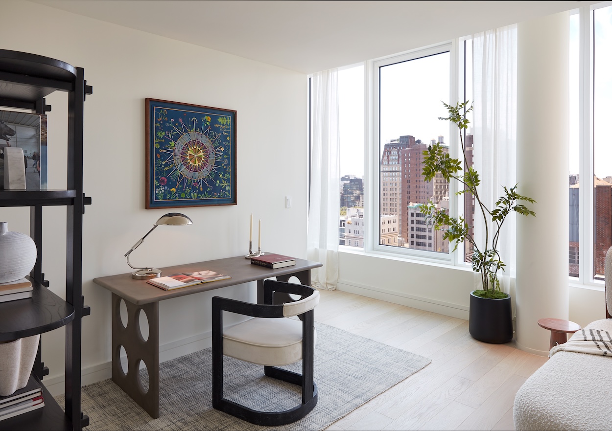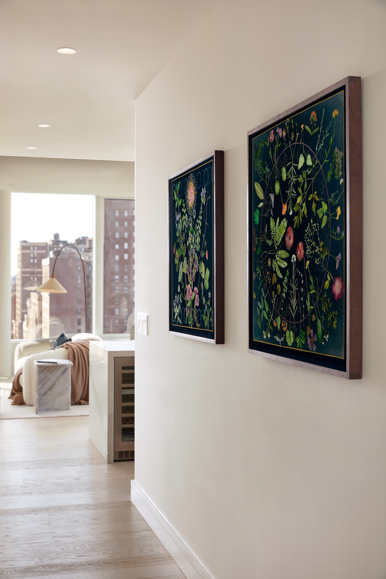 Designed by CetraRuddy, the light-filled, gallery-like Sky Garden Penthouse of the sinuous residential tower 200E20TH now hosts “Garden’s Edge,” an exhibition of works by lauded female artists Alexandria Tarver, Chellis Baird, and Julia Whitney Barnes. Set to a panoramic view of Gramercy Park and 360-degree views of the city, the group show contrasts the skyline and its urban iconography with artistic allusions to the natural world. Throughout, the full-floor penthouse affirms that art comes to life in the context of a home.