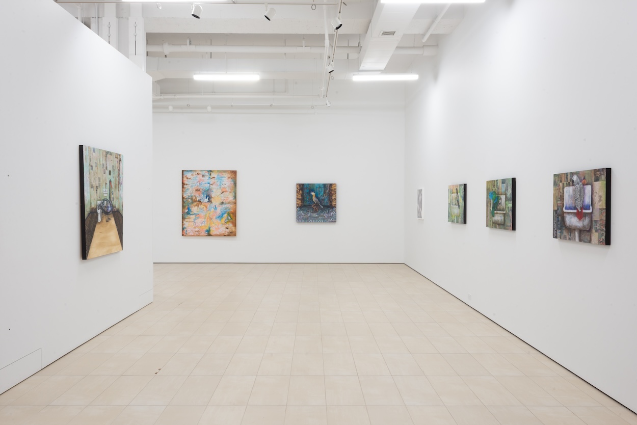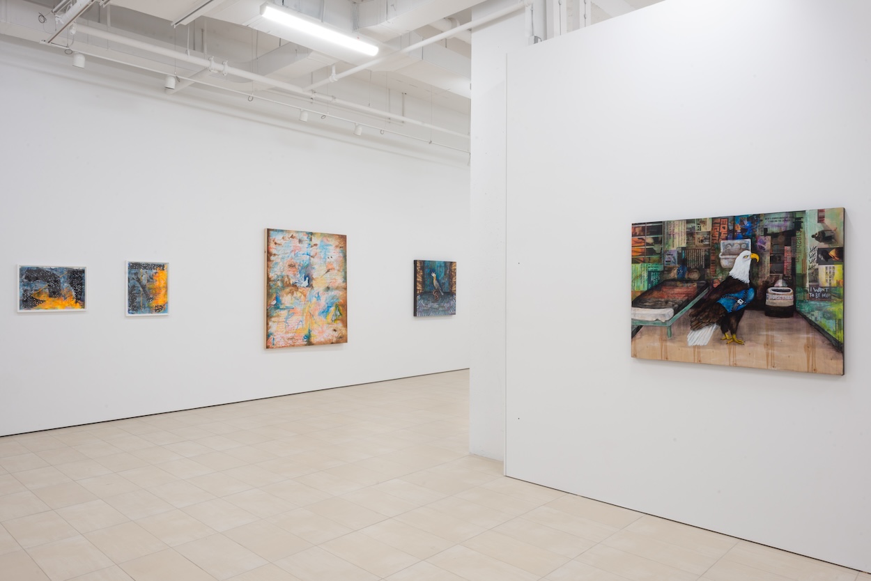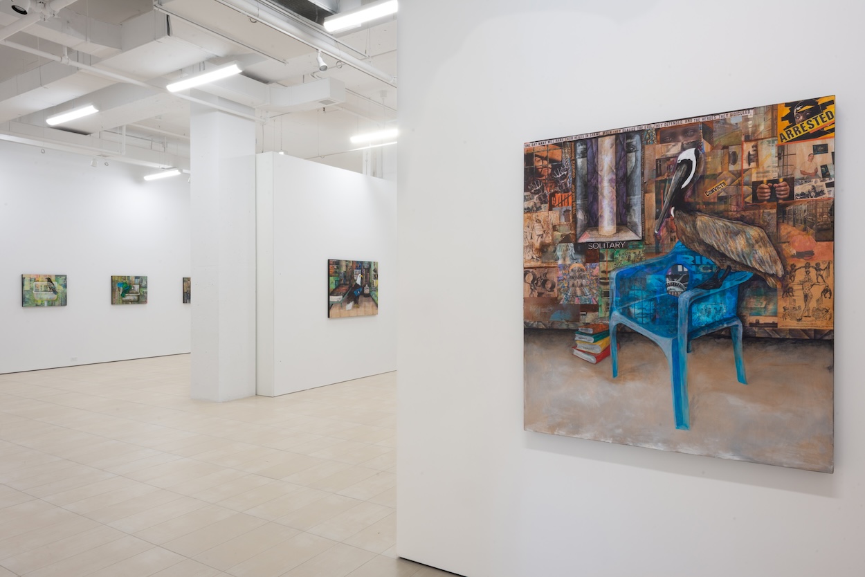 Can you elaborate on the figurative expression of the show’s title theme, “Jailbirds,” through the representation of various birds in this body of work? How does that contrast with your exploration of abstraction through the paper works that are also on view in this show?