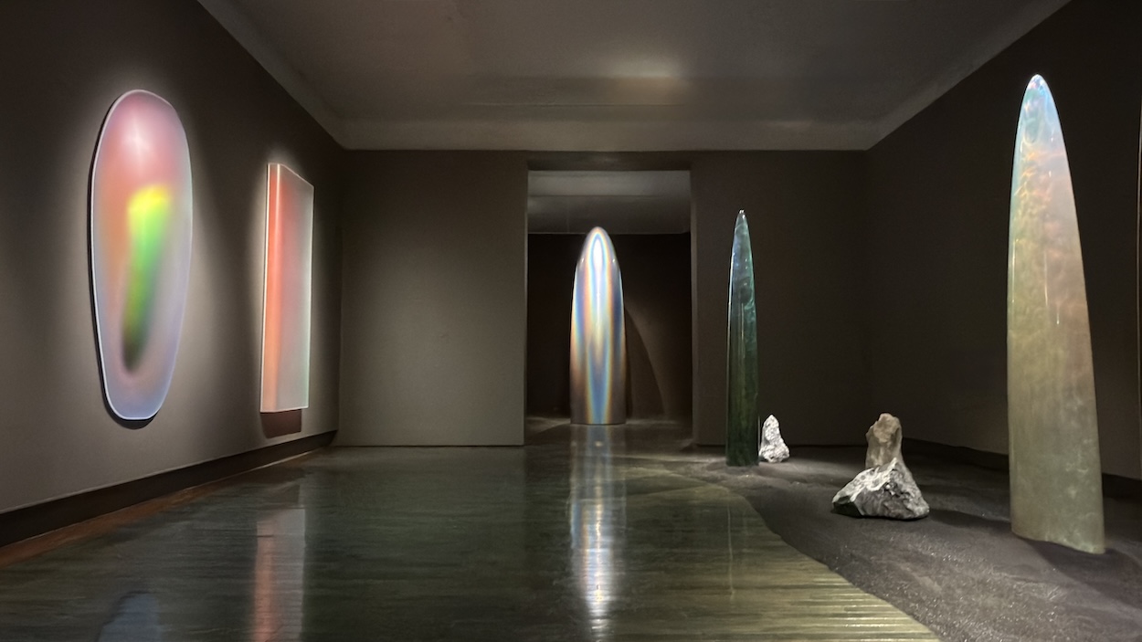 From the luminous, 30-foot-long Eternity Now (2021) elliptical dome at the inaugural “Forever Is Now” exhibition at the Pyramids of Giza to the towering Plasmático (2024) installation along the Monumental Axis of Brasília, Los Angeles–based fine artist Gisela Colón’s beguiling works have found critical recognition the world over. Colón’s latest exhibition, “La Montaña, El Monolito,” which opened March 14 at Museo de Arte Contemporáneo de Puerto Rico (MAC), marks a metaphoric return home. Born and raised in Puerto Rico, the artist introduced a shimmering site-specific sculpture into the Puerto Rican tropical rainforest last year, as part of ArteYunque. This new exhibition, however, represents a sprawling retrospective that covers more than 30 years of art and the context around its development.