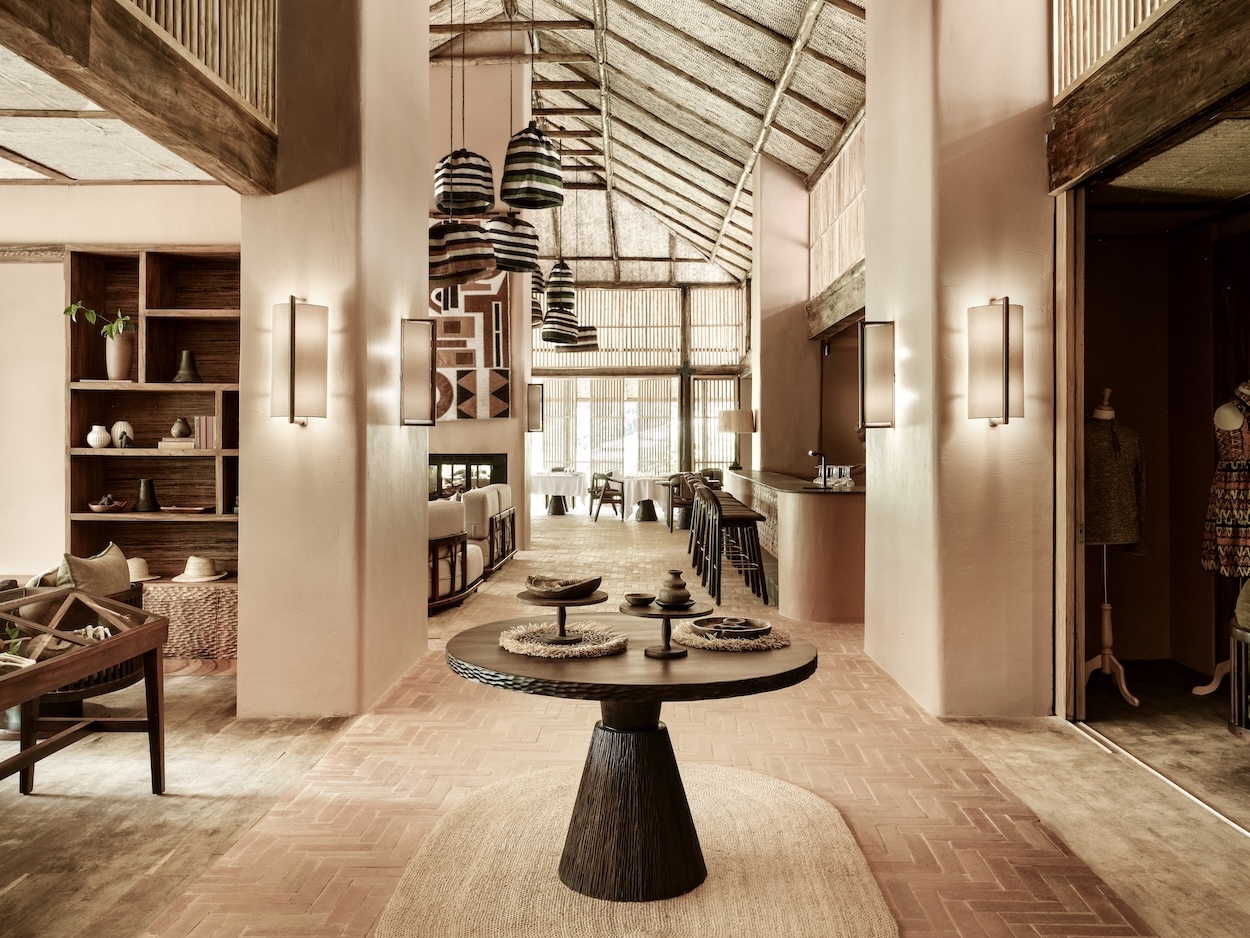 The Explorer’s Lounge functions as a base camp, where guests come together for talks on culture and conservation, as well as music and storytelling by local villagers. “Our intention was to create a space that feels grounded, intimate, and gently adventurous, encouraging guests to slow down, observe, and absorb their surroundings,” says Labe. There is plenty to discover at the Lounge, with a library of books, maps and artifacts highlighting local culture and ecology, designed in a warm, earthy, textural palette that evokes the rhythm of the forest.