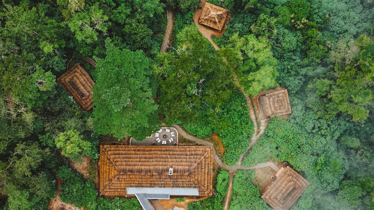Gorilla Forest Lodge showcases Ugandan craftsmanship, sustainable design, conscious luxury, and connection to the forest environment. Given the remote location, it’s not surprising that sustainability is at the heart of the project, from local artisan sourcing, craftsmanship techniques, and materials that help support local communities. Helmed by South African architectural firm Luxury Frontiers, a leader in ecofriendly and sustainable design, the Lodge appears to melt into the forest, at one with nature and its surroundings.
