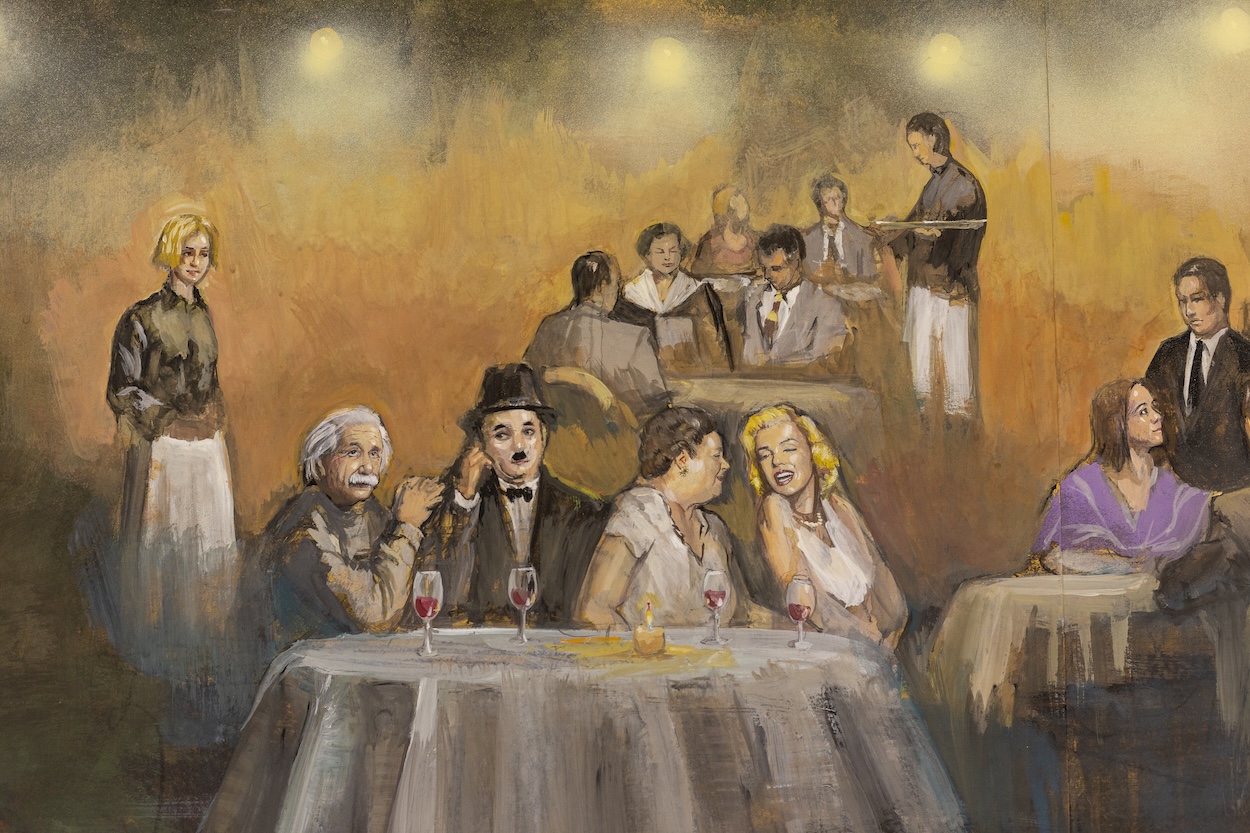 For Maxwell Social creative director Jacob Brown, the murals are meant to open the door to conversation. “You’re surrounded by all this insane luxury furnishing and finishing. Millwork, tile, velvet curtains, all maximalist and custom, but when you kick back on one of the overstuffed couches next to a member, even one you don’t really know, something about the space just sets you up for a killer convo,” he says. “It’s the opposite of hotel lobby vibes. And I have to think these incredibly evocative images of Elsa Maxwell living it up all over the world contribute to that.”