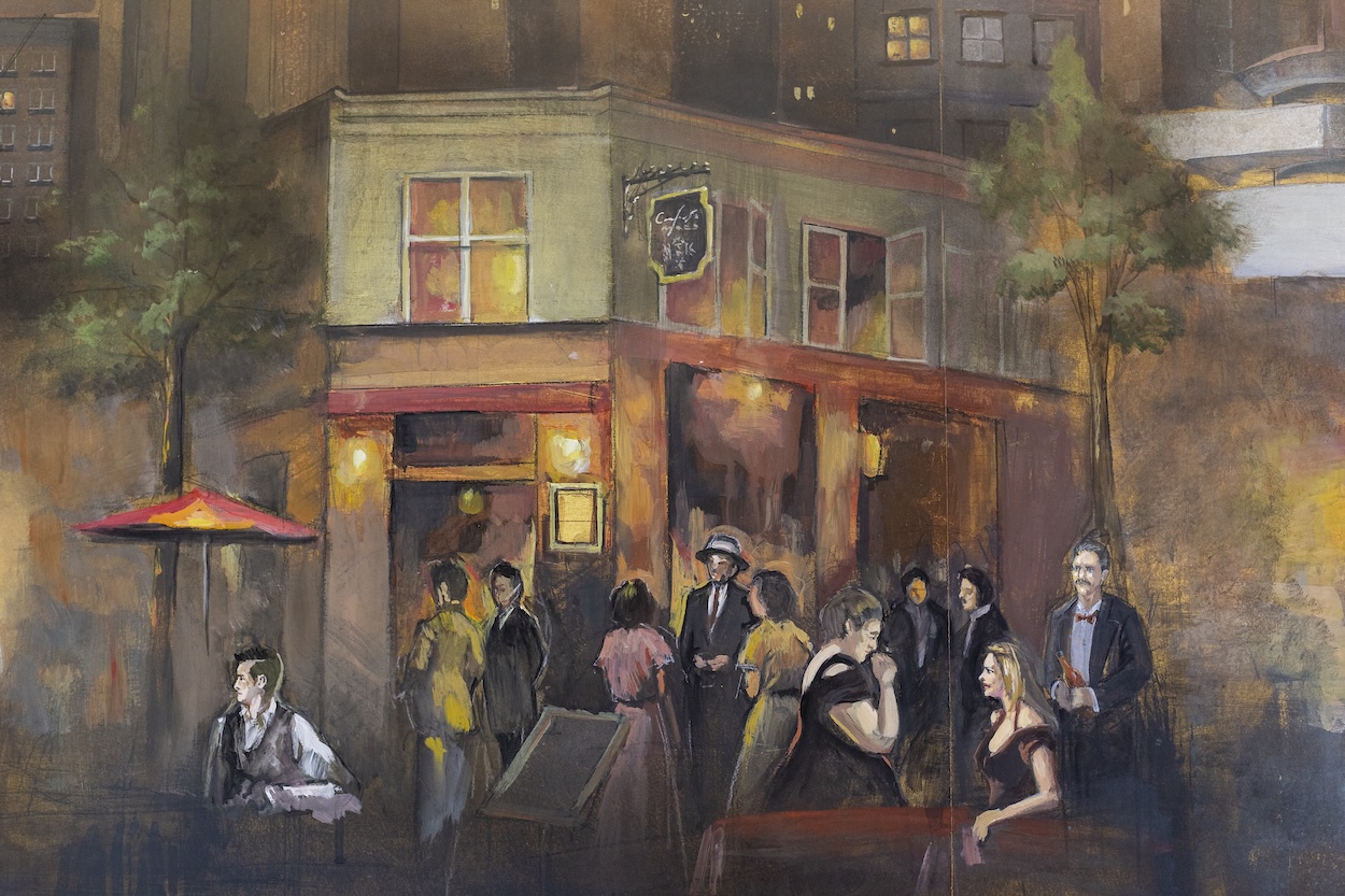 In an elegant space designed to accommodate and encourage social interaction, the murals have much to say. One also can’t help but sense the same magic that imbues Ludwig Bemelmans’ murals at The Carlyle Hotel. “The ethos at Maxwell harks back to an era when high society entertaining was more sophisticated and more fun,” says founder David Litwak, who led the design of the space. “That’s why we love Elsa Maxwell.”