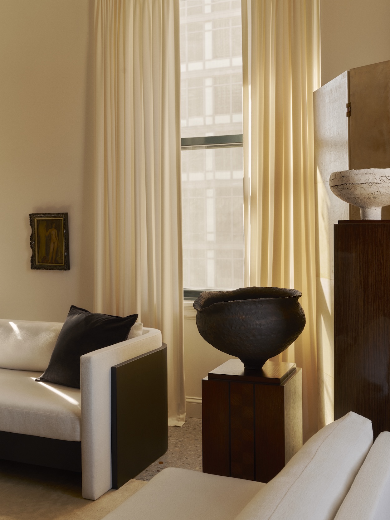 Coinciding with the debut of the Calma collection, Brooklyn-based ceramicist Ilona Golovina designed a series of hand-coiled vessels for Helena Clunies-Ross Design. These limited-edition pieces—which draw inspiration from ancient silhouettes—embrace the imperfections born of human hands. They work in concert with the architecture of Clunies-Ross’ Calma creations.