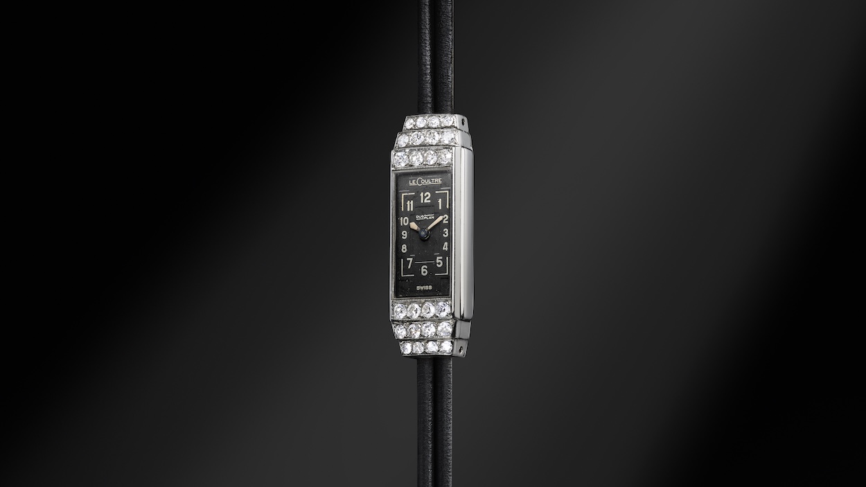 A duet of chunky driver watches introduces a striking contrast to the brand’s famed Reverso silhouette. The 1939 Duoplan Tuile presents a design anomaly: its rectangular case and dial are rotated 90 degrees, set horizontally across the wrist and capped with a convex crystal reminiscent of Mediterranean roof tiles. In a similarly unconventional look, the 1930s Duoplan Driver watch in steel features a black dial with white numerals and an angled face engineered for easy visibility behind the wheel, an elegant solution to the needs of early motorists.