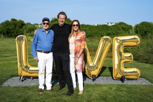 Last Thursday, Cheryl and Philip Milstein welcomed artists, collectors, and art institution leaders to their Hamptons residence for a celebration of Joel Mesler and his forthcoming exhibition at Guild Hall, “Miles of Smiles.” Opening Aug. 3, the show marks the contemporary artist’s museum debut Out East—at the cherished interdisciplinary art center. At the dînatoire, Mesler’s work was integrated into the Hamptons landscape, enveloping the entire event. His exuberant flags, which adorned The Rink at Rockefeller Center one year ago, billowed in the air above attendees as they arrived by golf cart. His love sculpture became a gathering point for guests. Guild Hall museum director and curator of visual arts, Melanie Crader, shared with Surface, “When you meet Joel, he pulls you into his orbit. A lot of his work is about connection. We wanted to bring that to Guild Hall.” For the exhibition, Mesler created an installation that mimics his office and studio, even incorporating work by artists he admires. “I am trying to share as opposed to tell,” Mesler says of the exhibition, and the programming he will lead throughout its run.