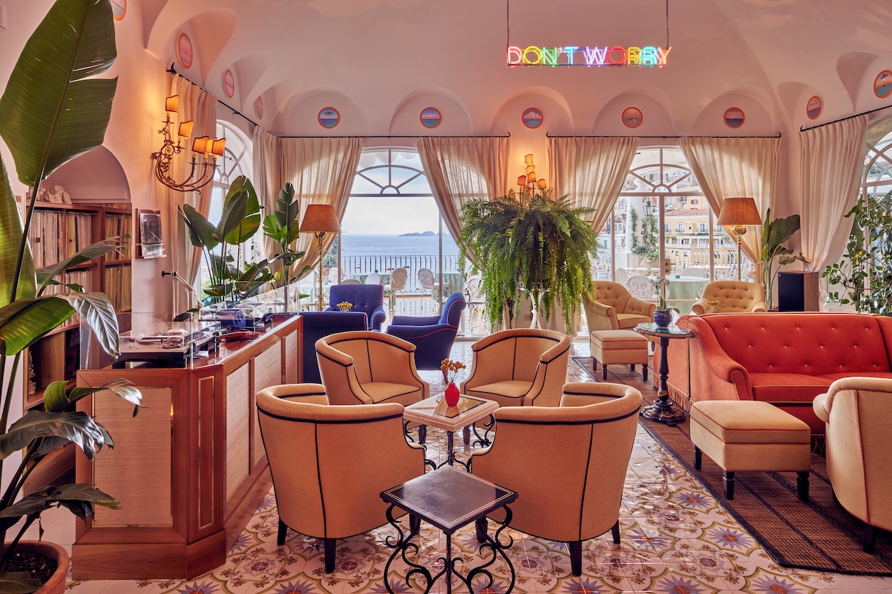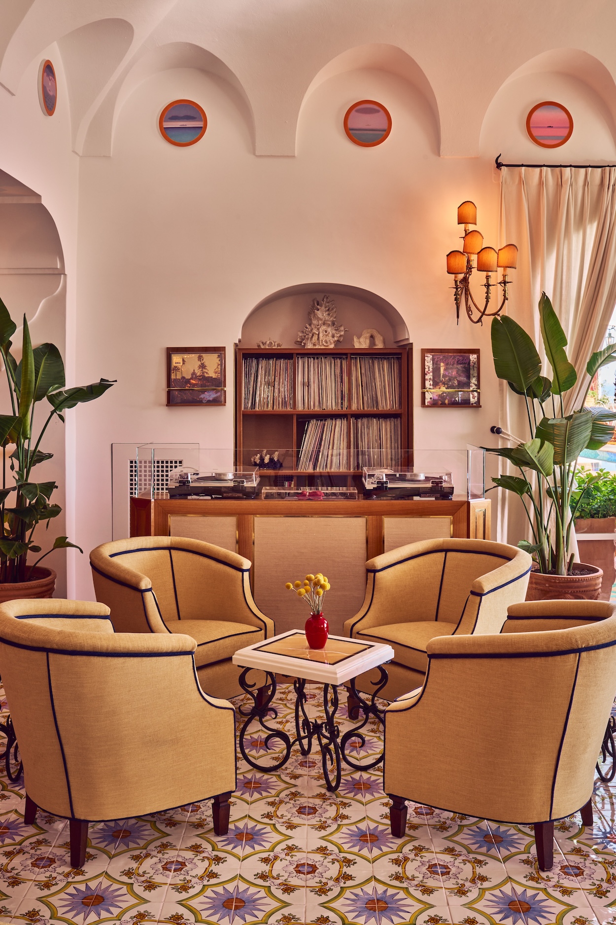 Everything feels like a work of art at Le Sirenuse, the Positano, Italy resort where even the famous outdoor pool features a site-specific piece by Swiss visual artist Nicolas Party. This year, the family-owned hotel welcomed 20 seascapes by another Swiss artist, Caroline Bachmann. Inspired by the hotel’s eagle-eye view of the Li Galli islands, Bachmann painted these 20 new works as a representation of various moments throughout an imaginary day, from midnight to midnight. All 20 now adorn the walls of Le Sirenuse’s Don’t Worry Music Bar, which was recently transformed into the Amalfi Coast’s first listening bar—complete with a state-of-the-art sound system.