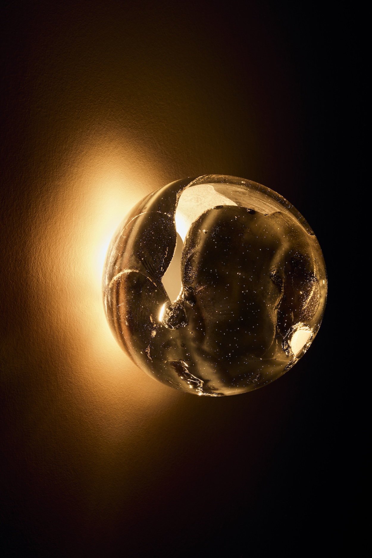 “By calibrating their rates of expansion, we were able to work with the two materials without catastrophic failure,” says Arbel, whose lighting design practice has long explored glass’ chemical and physical interactions with metals like chrome, copper, and steel. Experimentation is embedded in his studio’s philosophy, and working with unpredictable materials is embraced.