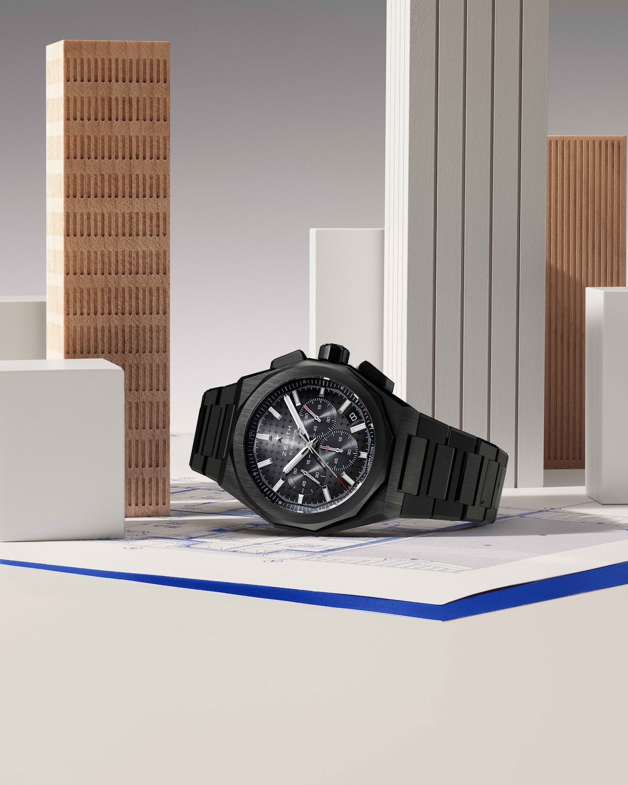 “The geometry, the case, the movement: they’re all part of the same idea,” Marietta says of the DEFY collection design process—and structure. “So when we introduce materials like ceramic it doesn’t really feel like an addition but more like a natural extension of that architecture. DEFY has really become the space where we can explore a more contemporary design language for Zenith.”