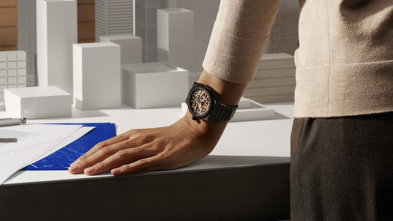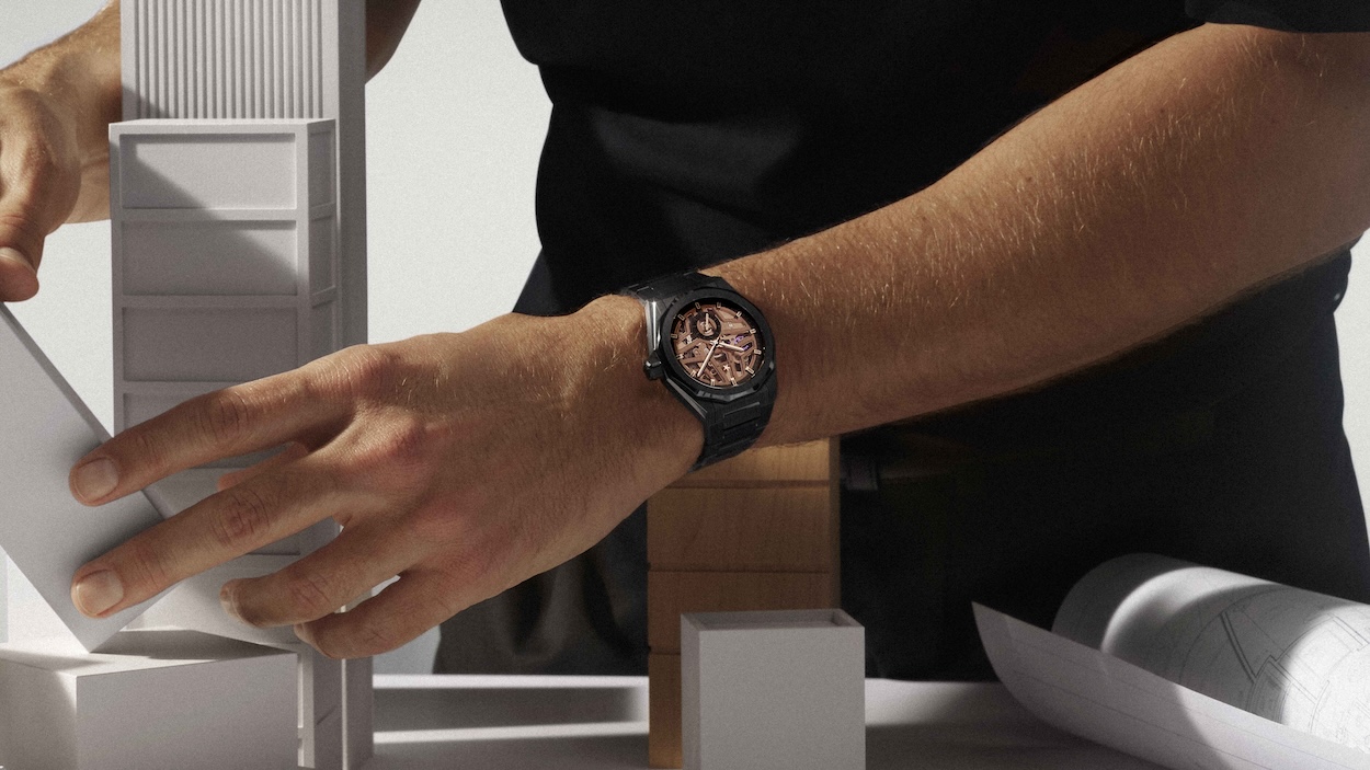 For the Skeleton, ceramic plays a key role in the design balance. “Skeletonization is about lightness and depth but it needs structure. And ceramic brings that structure,” Marietta adds. “It’s a very dense material and because it’s deeply colored throughout, not simply coated, it creates a form of contrast and tension. The open movement doesn’t feel fragile but instead reads like an exposed architectural framework suspended inside a very strong shell.”