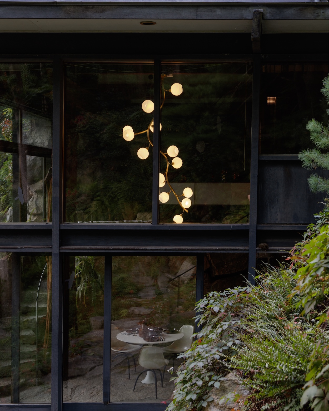 To visit Dragon Rock, the beguiling glass house and studio of lauded industrial designer Russel Wright, is to become enveloped in the vision and ideologies of one highly influential individual. And yet, Dragon Rock, much like Wright’s “American Modern” porcelain dinnerware and household items, is a complex vessel forever engaging with purpose, place, and the people within. It’s with this in mind that Manitoga / The Russel Wright Design Center has continued to invite artists and designers to place their work in concert with Dragon Rock. The latest invitation, an installation in partnership with R & Company entitled “Glass Light Nature” finds wondrous, vine-like pieces by glass artist Jeff Zimmerman lending an organic sensibility that speaks to the surrounding 75-acre compound (also designed by Wright).