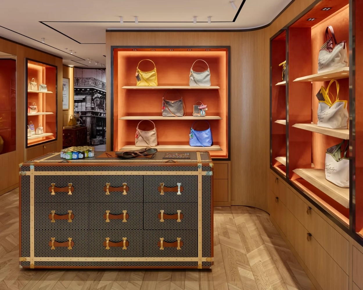 LVMH-owned luggage brand Moynat has opened its second Paris boutique, at 34 Avenue Montaigne. The 430-square-foot store features a limited-edition capsule collection, archival trunk displays, and on-site bag personalization, reflecting the brand’s focus on intimate, craft-driven retail and its growing appeal among younger shoppers drawn to the maison’s wealth of heritage and design.