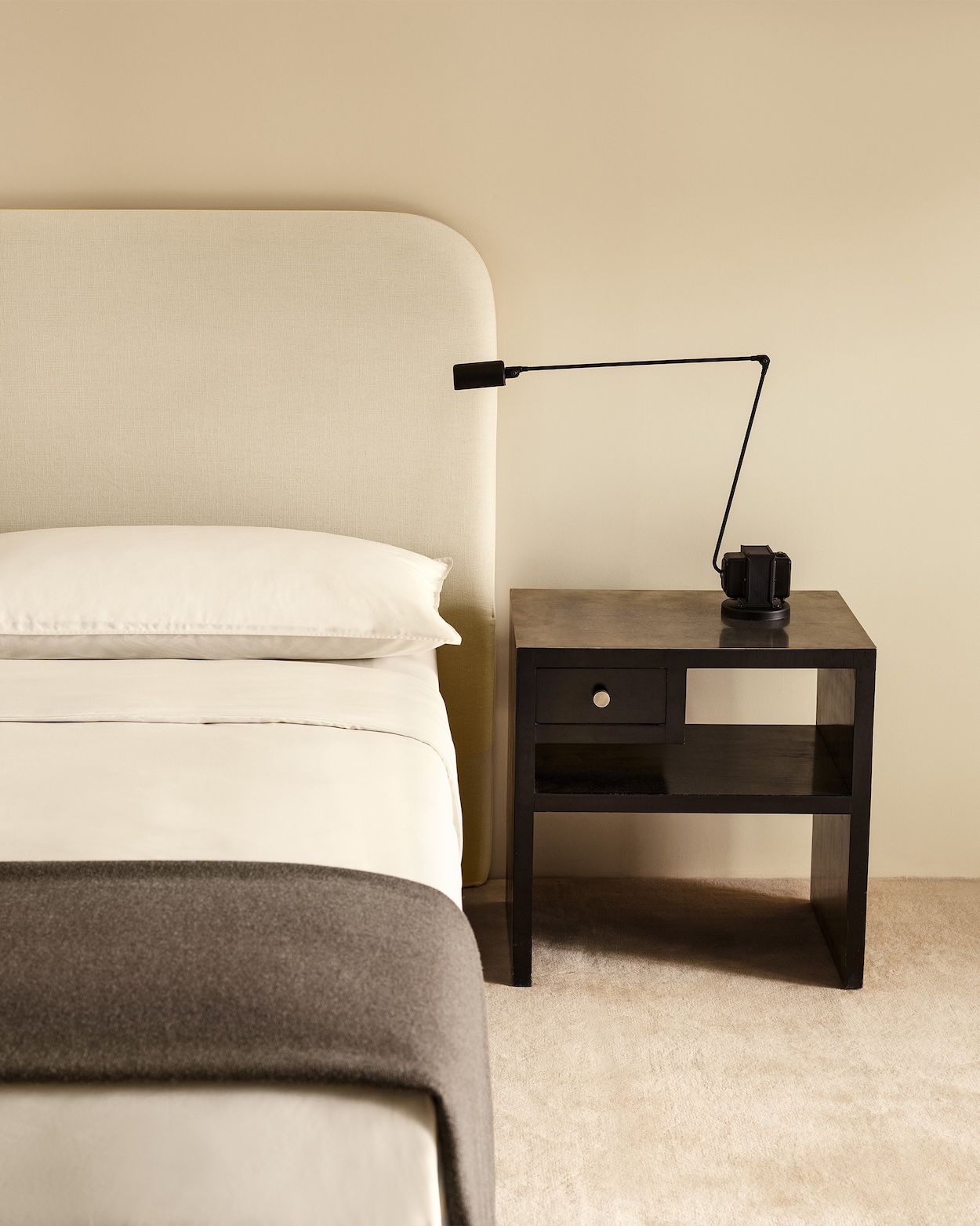 Each of the two headboard styles, the Signature and the Crown, represents an architectural archetype. “The Signature is very true to the Nordic Knots DNA—graphic, clean, modern. It’s calming but has a strong presence,” Laserow says. “The Crown is more expressive. It has a sculptural silhouette, a touch of old-world glamour, almost regal—hence the name. If the Signature is minimal Swedish restraint, the Crown is that same person on holiday at Lake Como.” She notes that both are made to anchor a room, but with different stories.