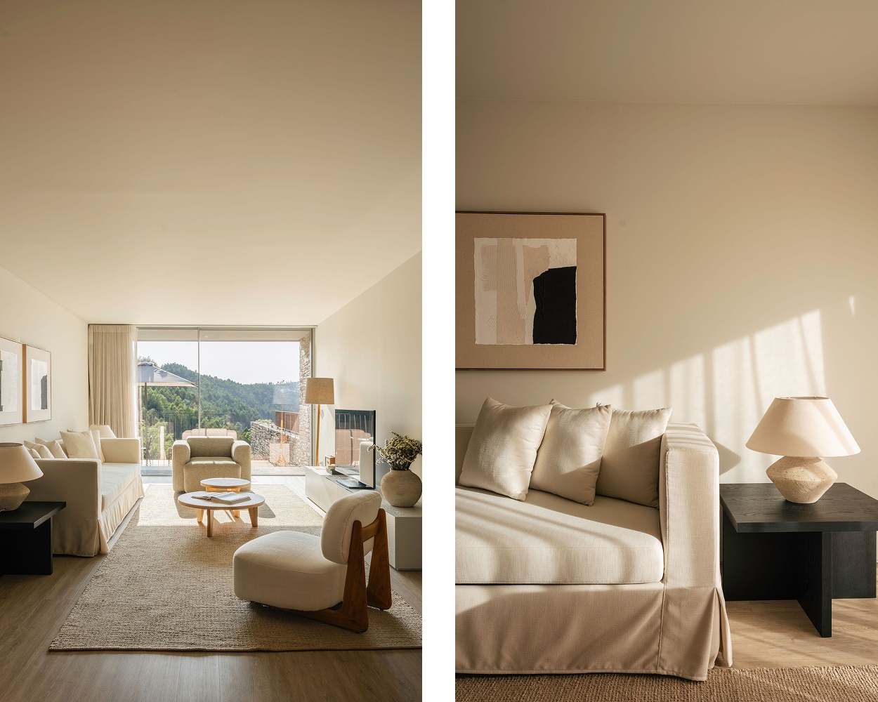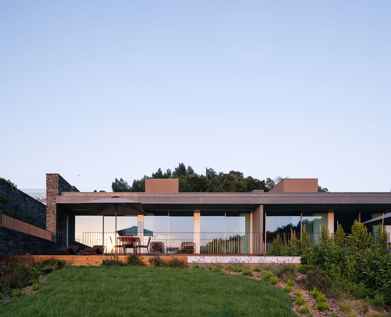 The new chapter includes 16 one-bedroom and four two-bedroom split-level residences, bringing the total to 79 keys. These aren’t typical guest rooms; they are residential-style dwellings where the boundary between interior and landscape is intentionally thin—floor-to-ceiling glass is a constant throughout, in the rooms, common spaces, and restaurants, orienting every vantage point toward the river and vine-covered hillsides.