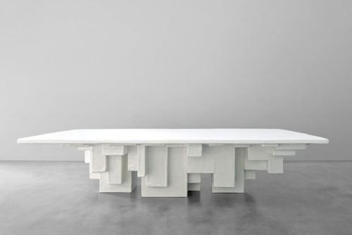 Piergiorgio Robino and Stefania Fersini created this long table in 2009 from a combination of cardboard, fibreglass, and polyester resin. This is the artist's proof for a one-piece production.
