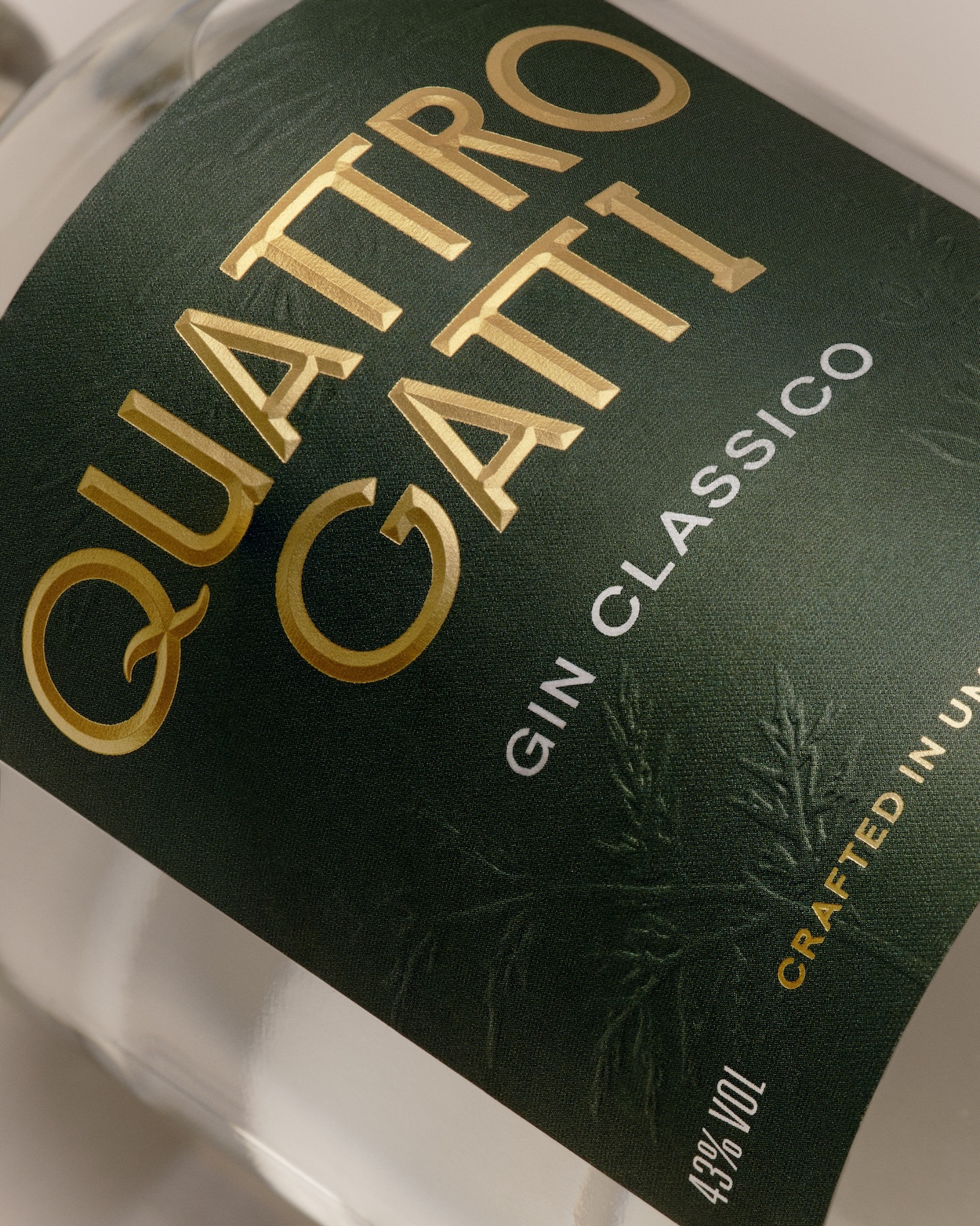 From Catriona’s perfume bottle collection to an expansive gin library as well as dialogues with bar teams, Quattro Gatti took shape. “It had to be something that felt like it would last forever,” Catriona says. Perhaps most impressive: the label of Olive Grove Gin was designed like the underside of an olive leaf. It even carries a subtle shimmer.