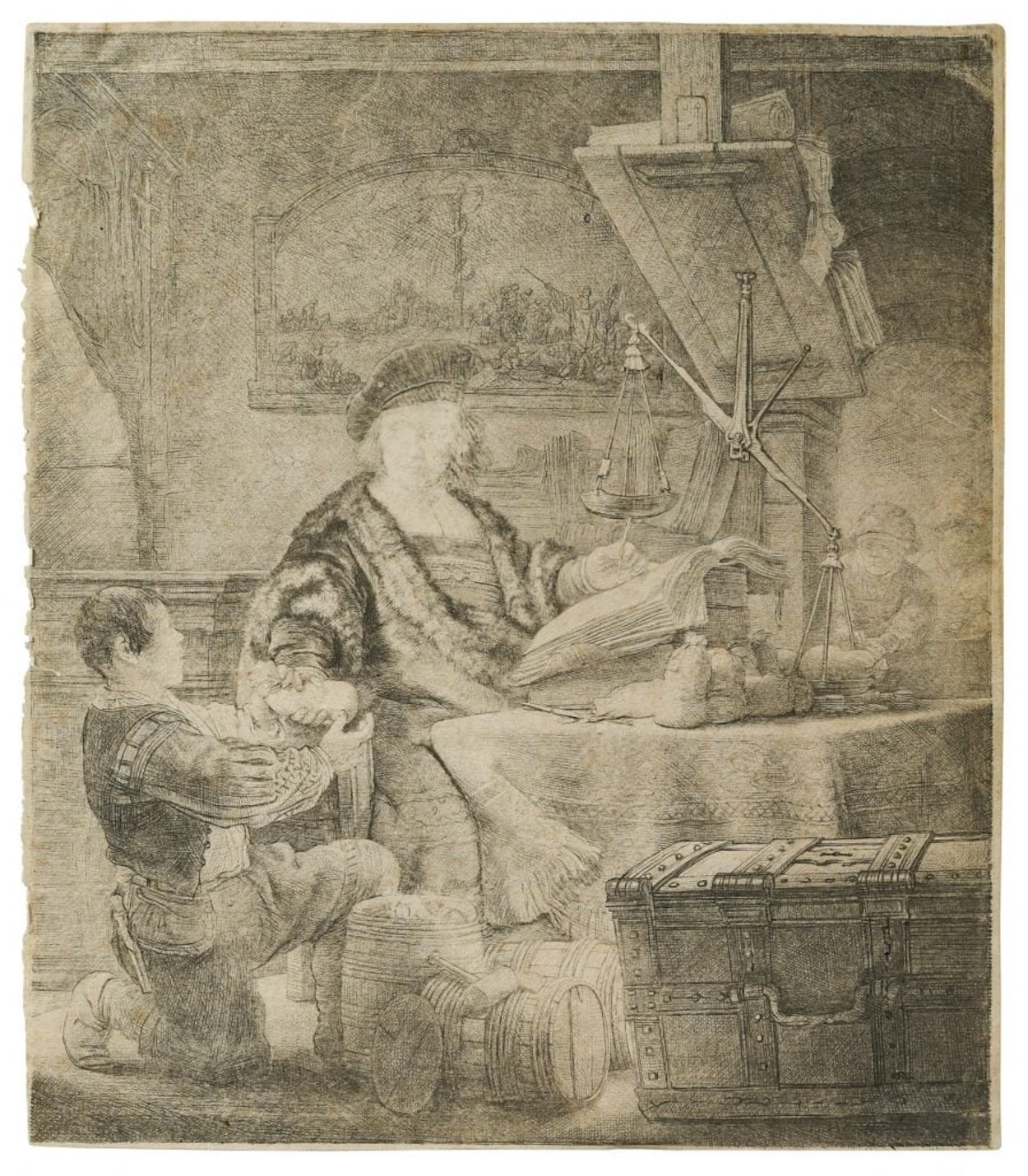 While sorting through his late father’s studio in Norfolk, a man discovered a small Rembrandt counterproof tucked inside a Victorian chest of drawers—an early working print for The Goldweigher from 1639. Specialists at Cheffins confirmed the etching’s significance through its reversed composition, watermark, and visible chalk underdrawing, linking it to two other known examples held in major museums. The find likely dates to the 1970s, when the owner’s father lived in Amsterdam and collected work by the Dutch master. When it heads to auction on December 3, the print is expected to sell for $13,100 to $26,200.