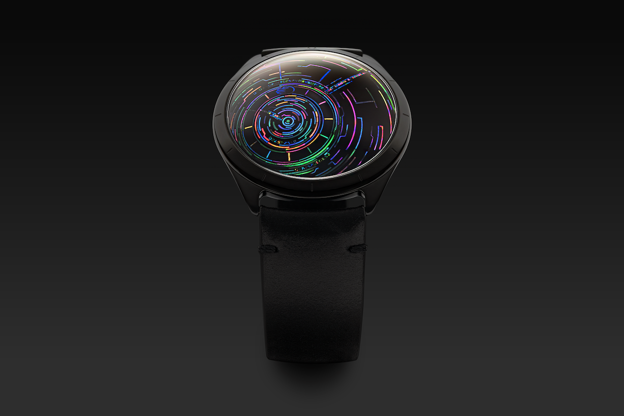The digital aesthetic effect was part of the artistic dialogue behind its inception. “I sought to create a design that feels as though one has fallen into an ocean of data,” he continues. “We inhabit a world saturated with signals, where time is instantly accessible. Yet this mechanical watch restores time to the body. Through its physical movement and its deep black surface, it creates an immersive field—an interface where spirit and matter converge.”