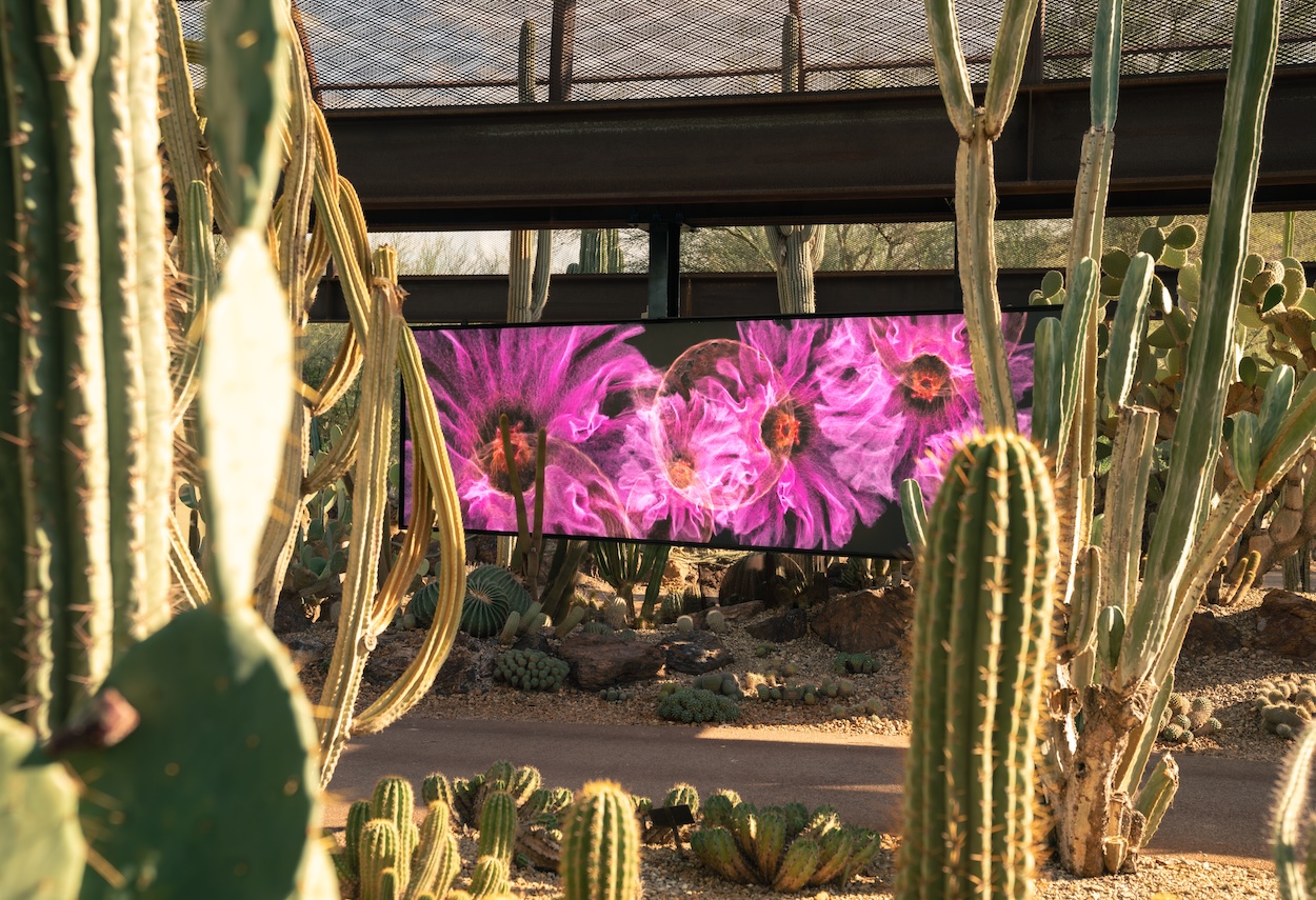 On view through May 10, “FRAMERATE: Desert Pulse” encourages various types of engagement. “A lot of people understand the different layers; a lot of people just like the beautiful flowers and how joyous it makes them feel,” Trossell says. “I am very happy for people to take what they want from it as long as it inspires them to think about their environment—to take away an appreciation of the fragility and resilience of the world around us.”