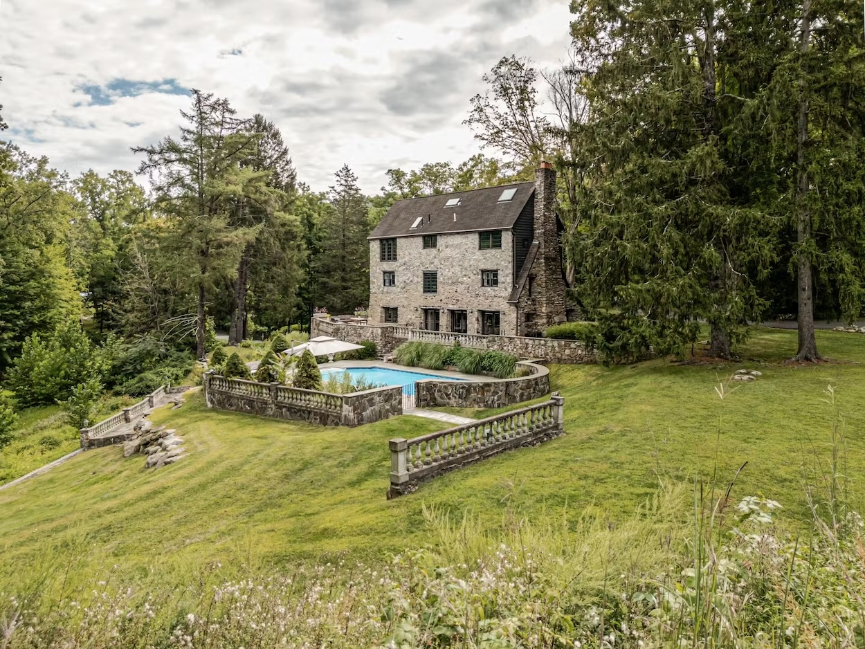 A one-time retreat for Franklin Delano Roosevelt has come on the market in New York’s Hudson Valley for $1.55 million. Designed in 1930 by Aymar Embury II, the five-bedroom stone house sits on 12 acres of meadows and woodland once belonging to FDR’s close friend and Treasury Secretary, Henry Morgenthau Jr. The residence still bears the hand-hewn materials and Tudor-style detailing of its era, paired with modern updates like a chef’s kitchen and heated saltwater pool. Just outside Beacon and Cold Spring, the property offers the quiet grandeur that once drew Roosevelt to its hills.