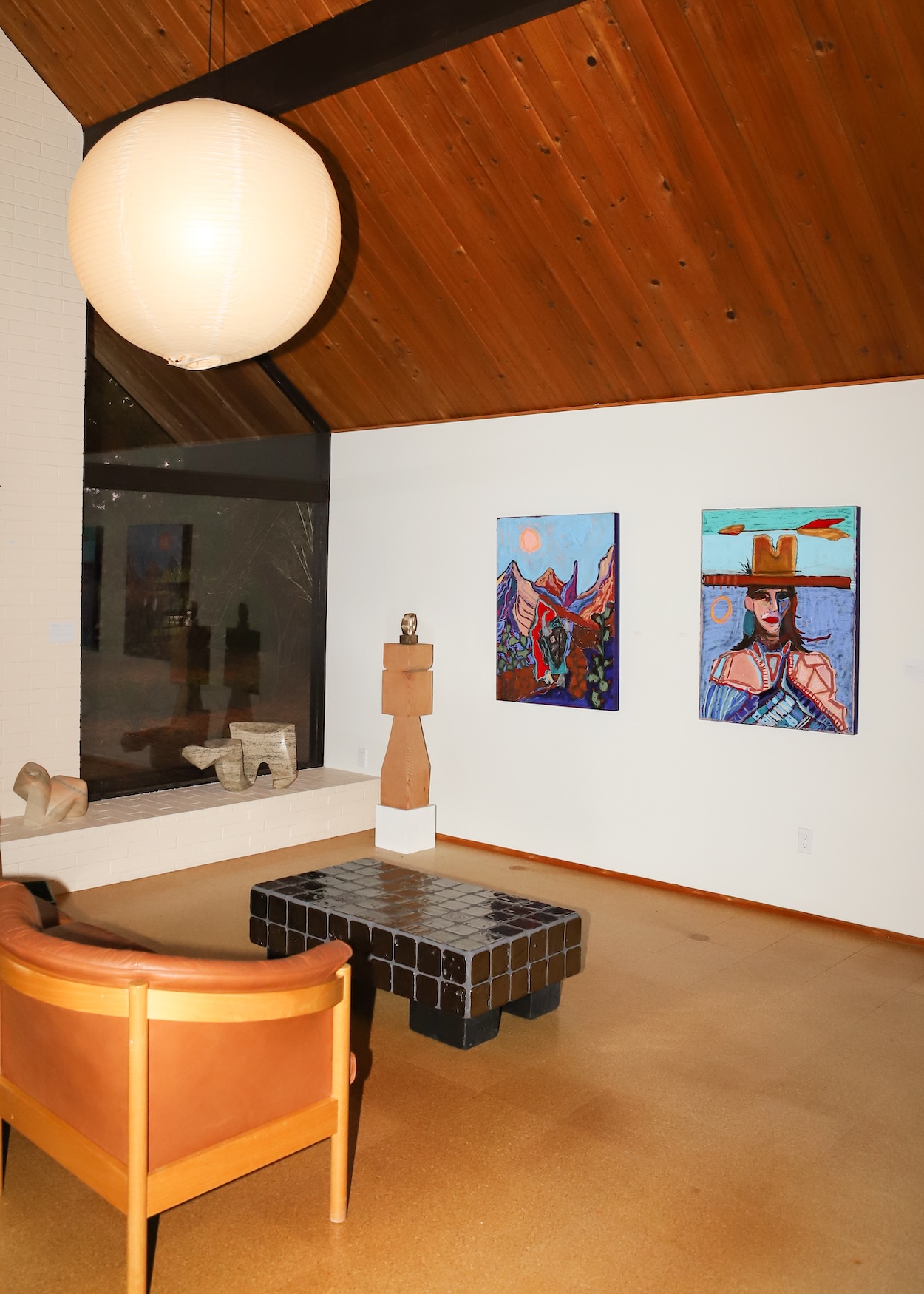 Curated by Lena Vasilenko and Emma Strgar of Oregon-based experiential agency Ethereal Reflections, “The Open House” marked a one-night, invitation-only exhibition within a private midcentury residence designed and built by modernism pioneer Robert Rummer. Presented by Marisa Swenson of Modern Homes Collective, the group show framed pieces by contemporary artists in dialogue with the architecture to encourage reflection on the way art enhances a domestic space. A sense of discovery defined the organic installation, which incorporated artists Stephanie Ketty (who presented four new paintings), Christopher Belluschi, Ben Latham, Aremy Stewart, Carvers Collective, and many more.