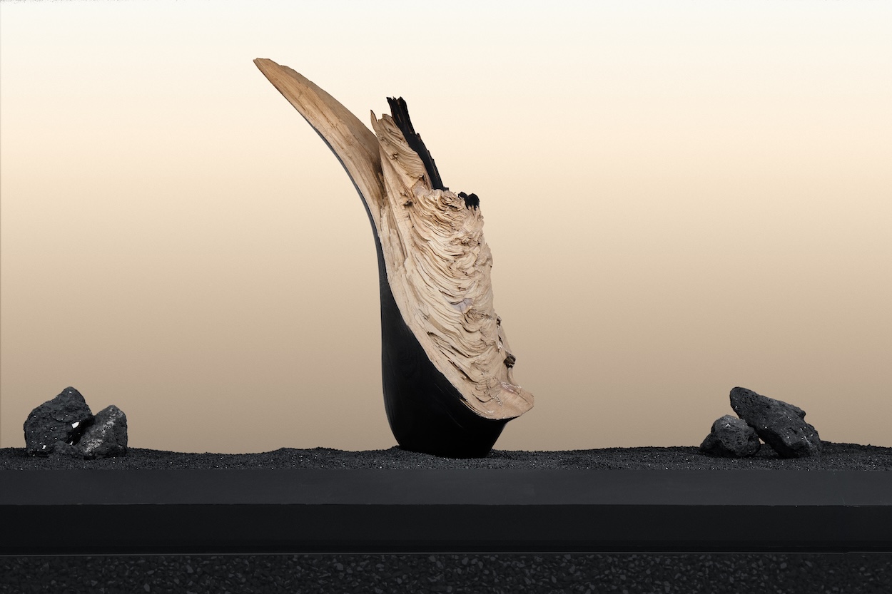 The entire spatial design of the exhibition was imagined and brought to life in collaboration with London-based Storey Studio, founded by Robert Storey. They helmed the sensory touches—from the infinity room to the way the final space emulates a river bed. It’s these careful considerations, for relationship to place and feeling, that position “Traces” as enriching and otherworldly.