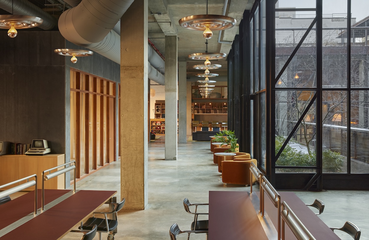 Founded by talent agency Whaler, the Lighthouse is a members-only workplace specifically for content creators and traditional creatives like photographers, graphic designers, or videographers. Having previously designed for CEO Jon Goss when he was chief marketing officer at NeueHouse, Warkentin crafted Whaler’s first outpost last year in a deaccessioned 1939 post office in Venice, California. This month, its Brooklyn branch opened in an 1872 Eberhard Faber plant-turned-office, which Kickstarter vacated in 2020.
