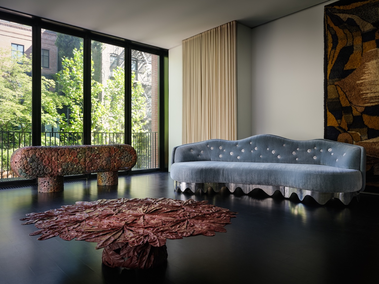 With “Gilding the Lily,” artist and designer Chris Wolston punctuates The Future Perfect’s New York townhouse with an entirely new body of design pieces that range from sand-cast aluminum and bronze works to wool wall tapestries woven in Morocco. For the exhibition, Wolston responds to art historian Irene Sargent’s 1902 critique of the Art Nouveau movement’s “wavy line,” and its power to seduce those inhabiting the world of decorative arts. Wolston’s works align a sculptural sense of wonder with texture and utility.